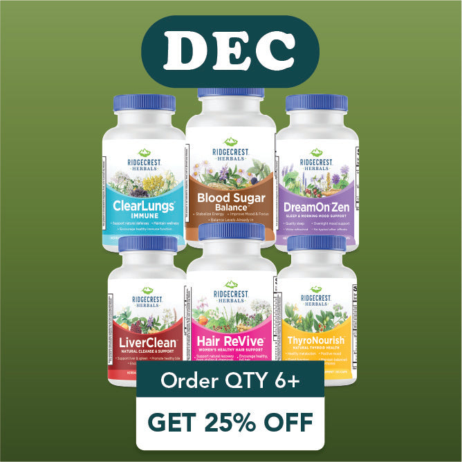 Order 6 or more of Blood Sugar Balance, ClearLungs Immune, DreamOn Zen, LiverClean, Hair ReVive or ThyroNourish and receive 25% off.