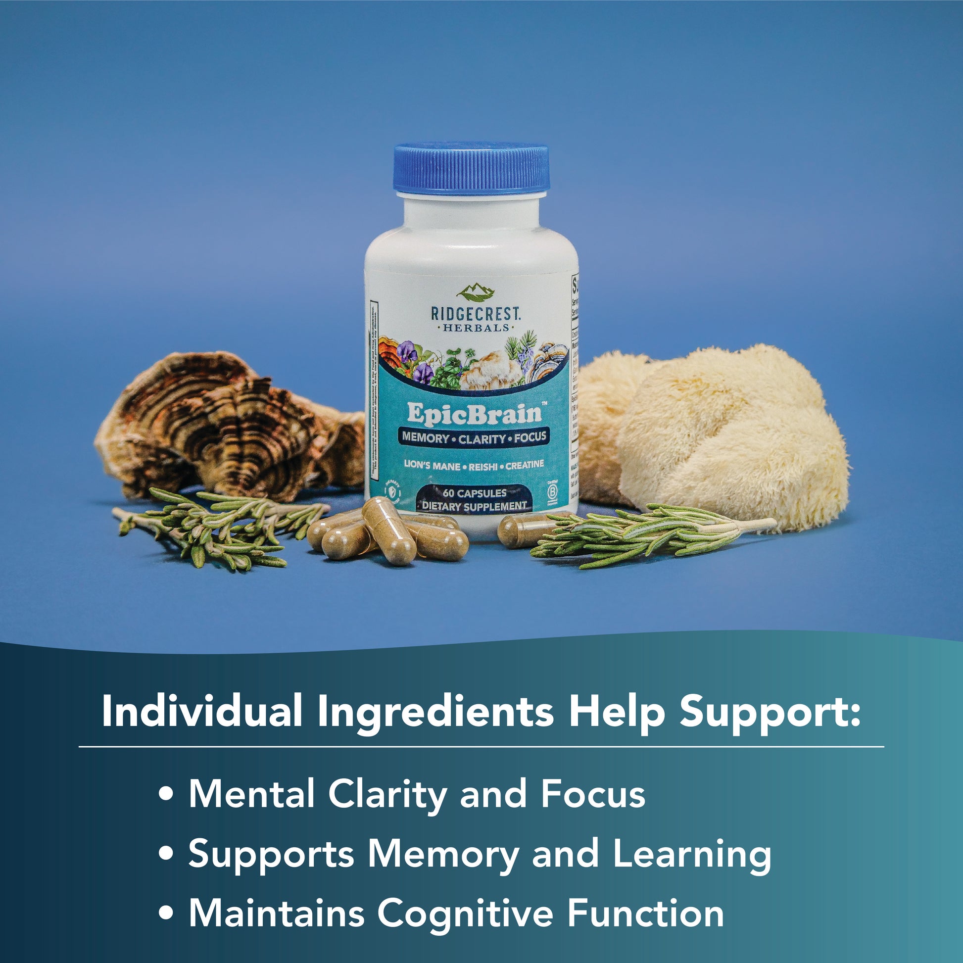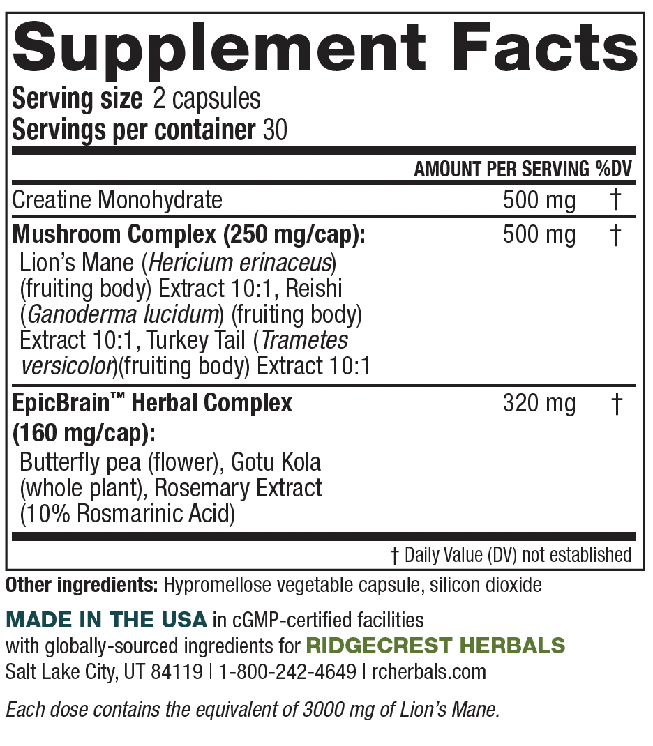 Ready to unlock your brain's potential naturally? Epic Brain combines powerful mushrooms, herbs, and creatine to support memory, mental clarity, and focus without stimulants. This unique blend works synergistically to nourish your brain at the cellular level, supporting natural energy production and cognitive performance. Whether you need daily mental support or extra focus during demanding times, Epic Brain adapts to your needs with flexible dosing (2-8 capsules). Experience the difference of comprehensive brain nutrition that works with your body, not against it.